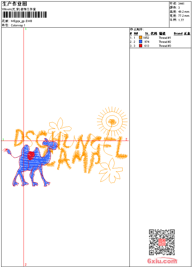 - 版带文件需绣花软件方可打开,可配色打印导出各种格式或直接上机绣。如无绣花软件可下载1:1模拟效果图。