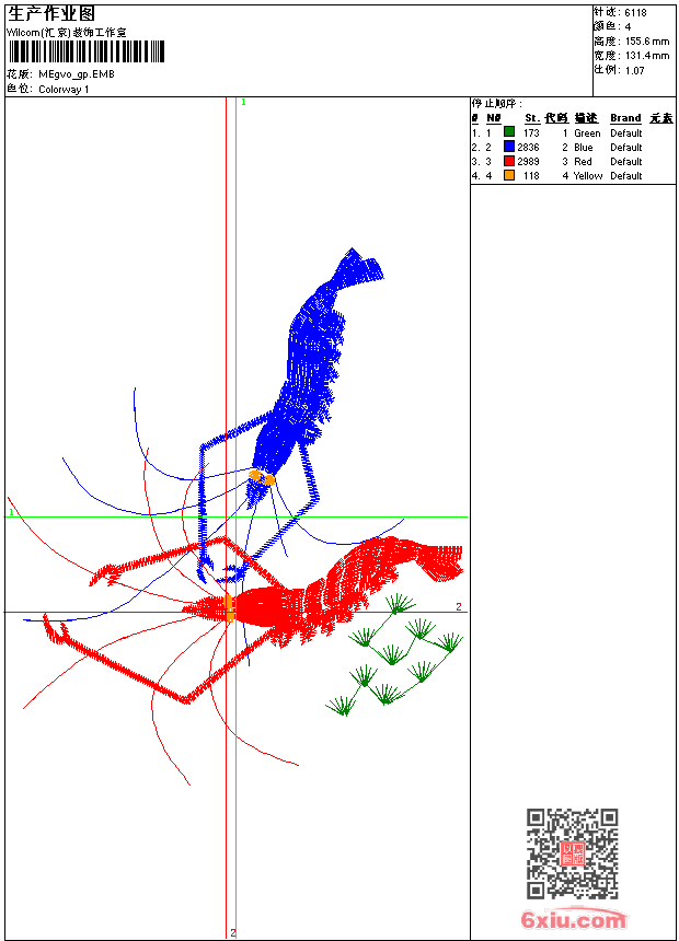 - emb花版参数: 大小:27.00 KB / 尺寸:131*156[毫米] / 针数:6118针 / 线色:4 / 格式:emb / 版本:9