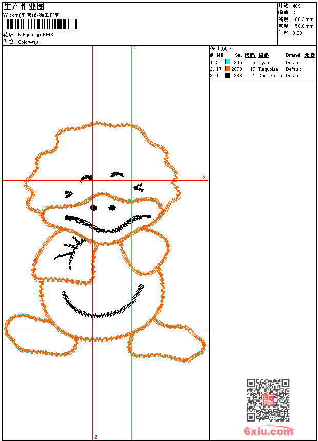 - 版带文件需绣花软件方可打开,可配色打印导出各种格式或直接上机绣。如无绣花软件可下载1:1模拟效果图。