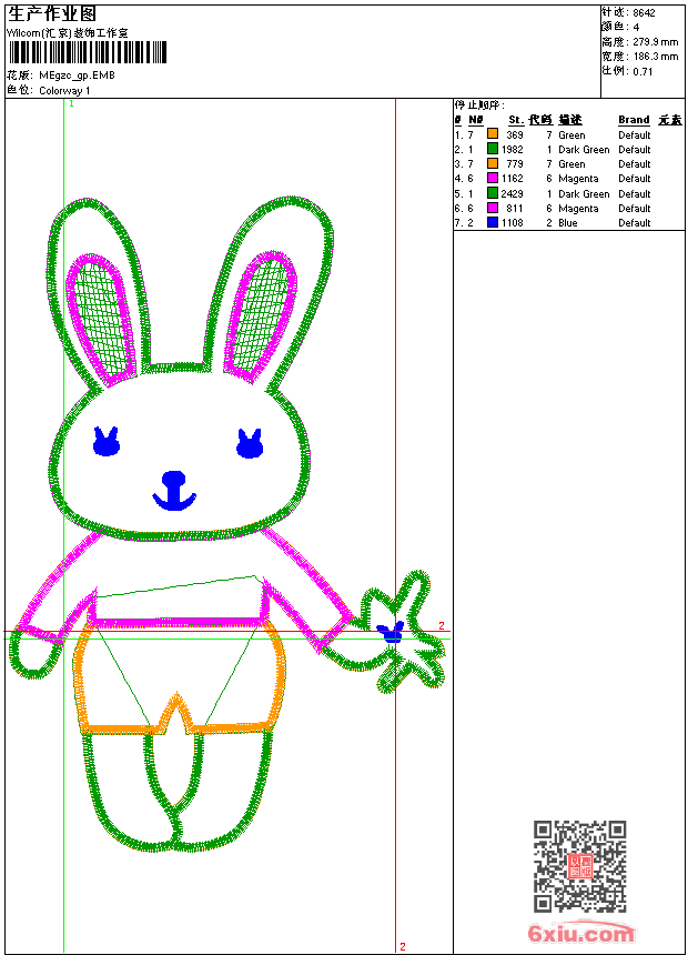 - 版带文件需绣花软件方可打开,可配色打印导出各种格式或直接上机绣。如无绣花软件可下载1:1模拟效果图。