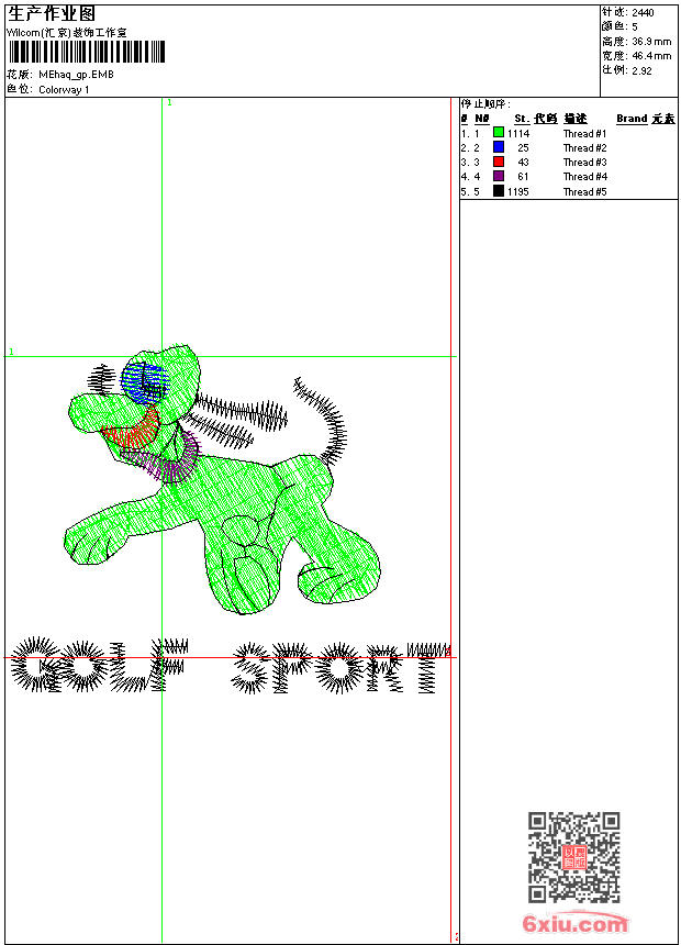 - emb花版参数: 大小:28.00 KB / 尺寸:46*37[毫米] / 针数:2440针 / 线色:5 / 格式:emb / 版本:9