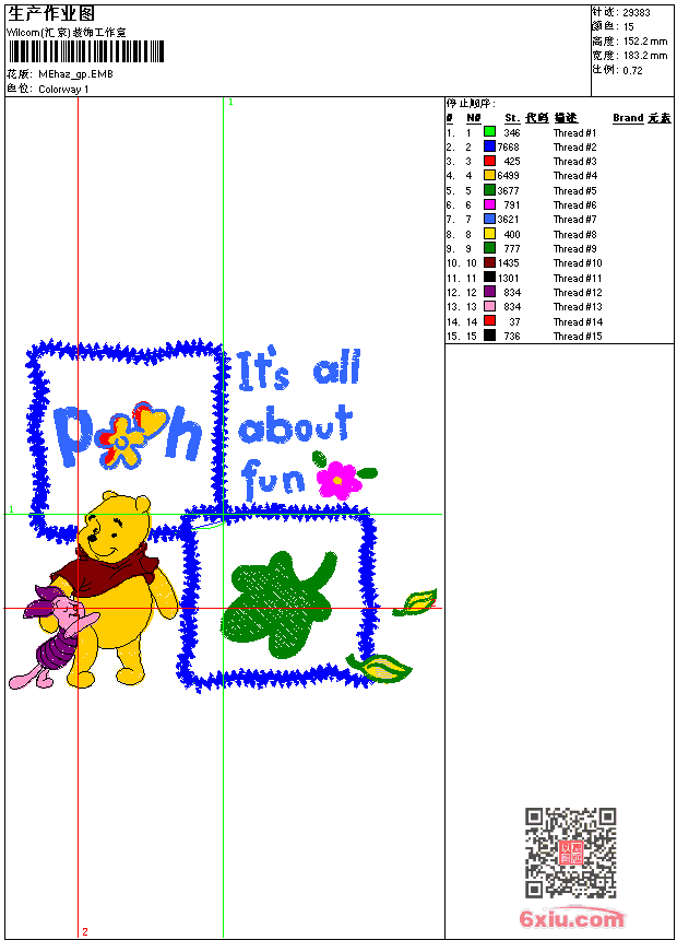 - emb花版参数: 大小:123.00 KB / 尺寸:183*152[毫米] / 针数:29383针 / 线色:15 / 格式:emb / 版本:9