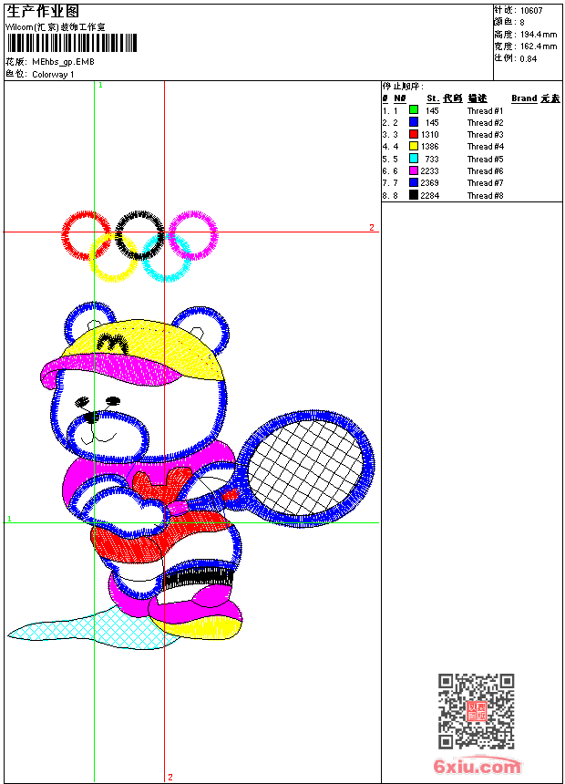 - emb花版参数: 大小:47.00 KB / 尺寸:162*194[毫米] / 针数:10607针 / 线色:8 / 格式:emb / 版本:9