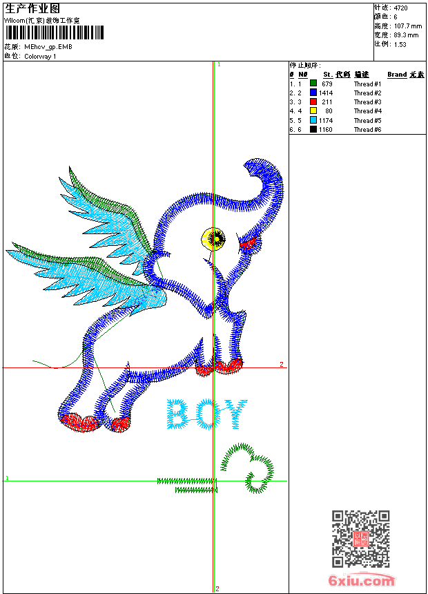 - emb花版参数: 大小:40.00 KB / 尺寸:89*108[毫米] / 针数:4720针 / 线色:6 / 格式:emb / 版本:9