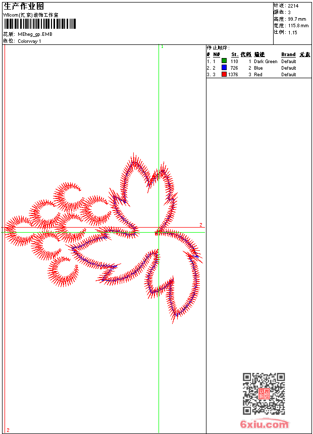 - emb花版参数: 大小:35.50 KB / 尺寸:116*100[毫米] / 针数:2214针 / 线色:3 / 格式:emb / 版本:9