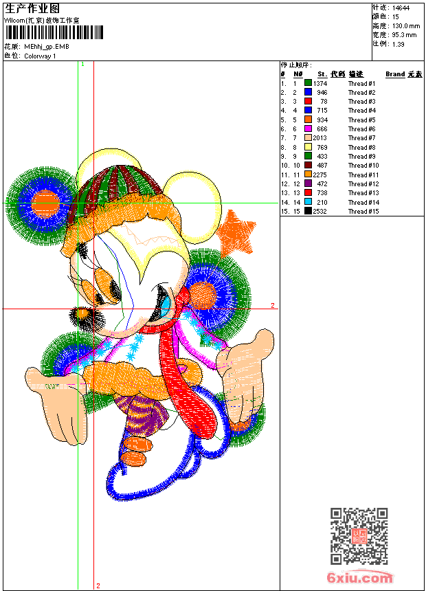 - emb花版参数: 大小:69.00 KB / 尺寸:95*130[毫米] / 针数:14644针 / 线色:15 / 格式:emb / 版本:9