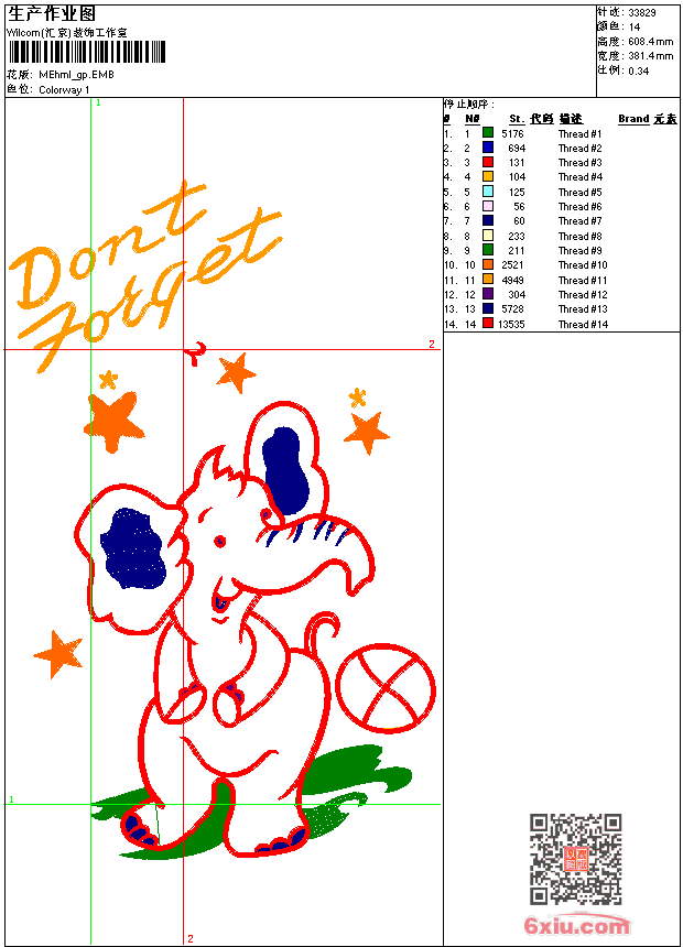 - emb花版参数: 大小:94.50 KB / 尺寸:381*608[毫米] / 针数:33829针 / 线色:14 / 格式:emb / 版本:9