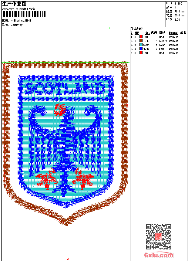 - emb花版参数: 大小:47.00 KB / 尺寸:60*79[毫米] / 针数:11800针 / 线色:4 / 格式:emb / 版本:9