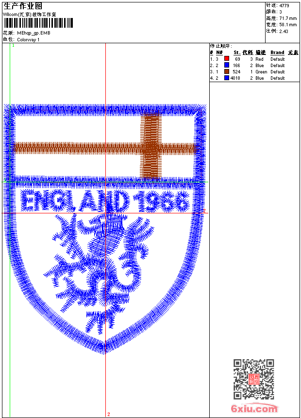 - emb花版参数: 大小:42.00 KB / 尺寸:58*72[毫米] / 针数:4779针 / 线色:3 / 格式:emb / 版本:9