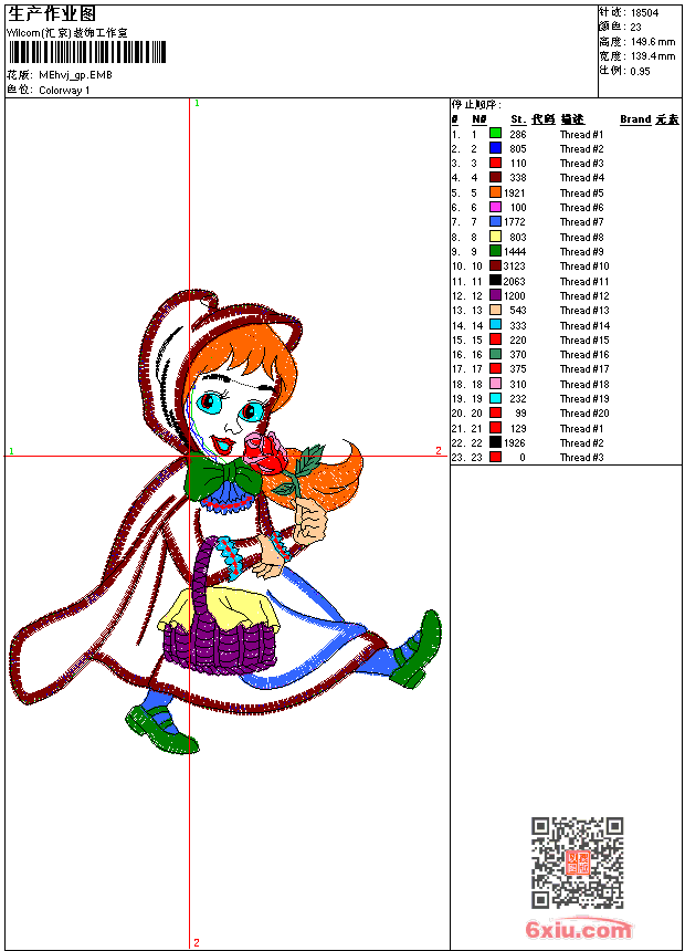 - emb花版参数: 大小:88.50 KB / 尺寸:139*150[毫米] / 针数:18504针 / 线色:23 / 格式:emb / 版本:9