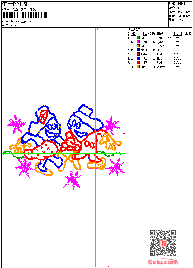 - emb花版参数: 大小:170.00 KB / 尺寸:235*163[毫米] / 针数:14266针 / 线色:6 / 格式:emb / 版本:9