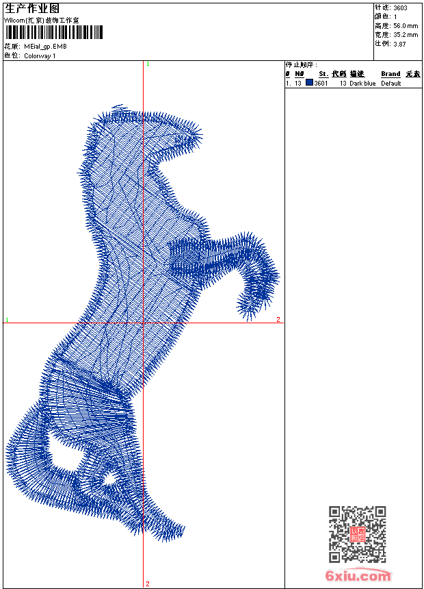 - emb花版参数: 大小:39.50 KB / 尺寸:35*56[毫米] / 针数:3603针 / 线色:1 / 格式:emb / 版本:9
