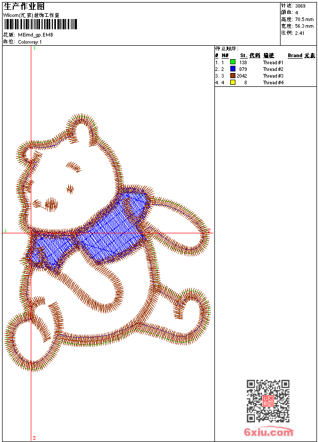 - emb花版参数: 大小:27.50 KB / 尺寸:56*71[毫米] / 针数:3069针 / 线色:4 / 格式:emb / 版本:9