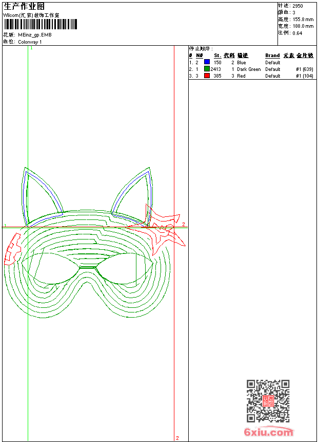 - emb花版参数: 大小:106.50 KB / 尺寸:188*156[毫米] / 针数:2950针 / 线色:3 / 格式:emb / 版本:9