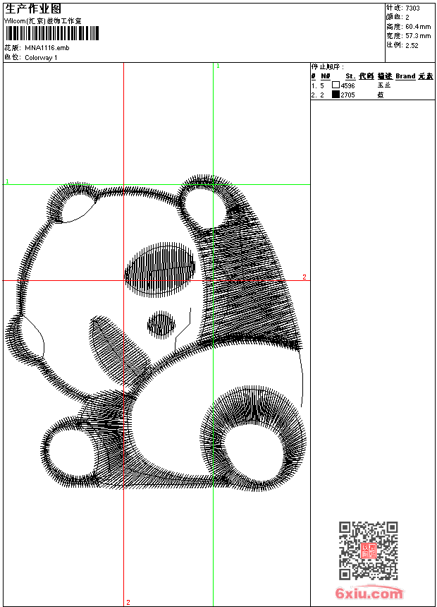 - emb花版参数: 大小:32.00 KB / 尺寸:57*60[毫米] / 针数:7303针 / 线色:2 / 格式:emb / 版本:9