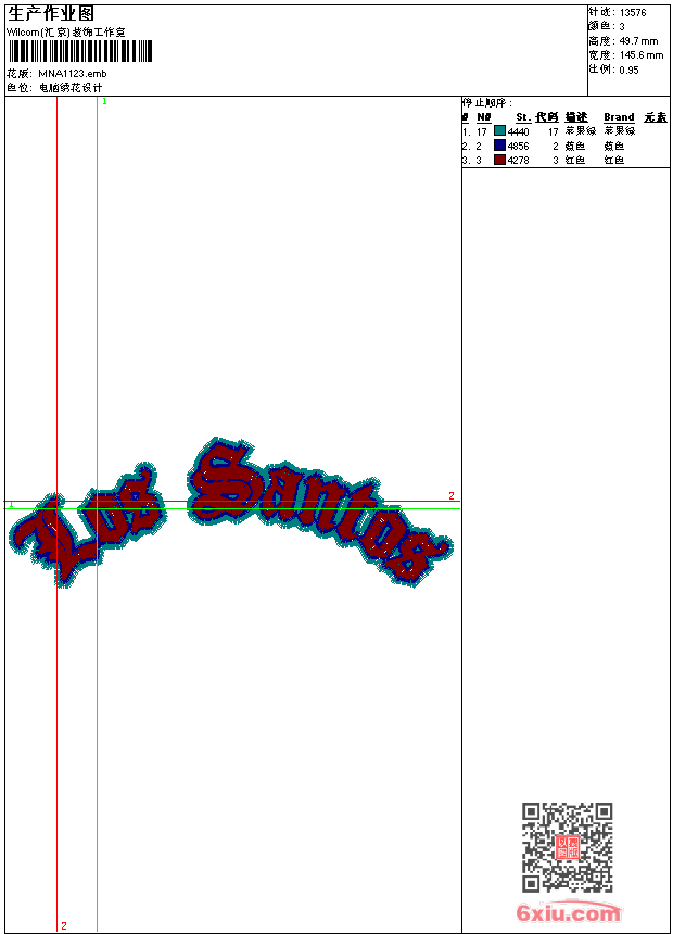 - emb花版参数: 大小:79.00 KB / 尺寸:146*50[毫米] / 针数:13576针 / 线色:3 / 格式:emb / 版本:9