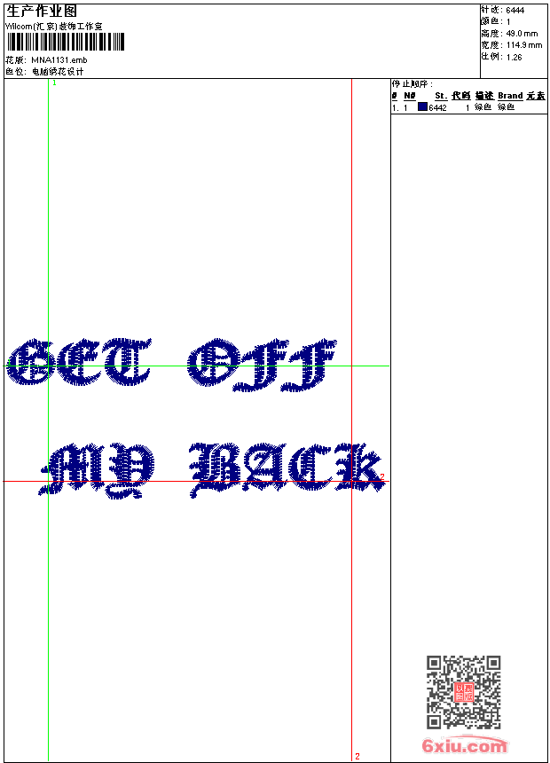 - emb花版参数: 大小:43.00 KB / 尺寸:115*49[毫米] / 针数:6444针 / 线色:1 / 格式:emb / 版本:9