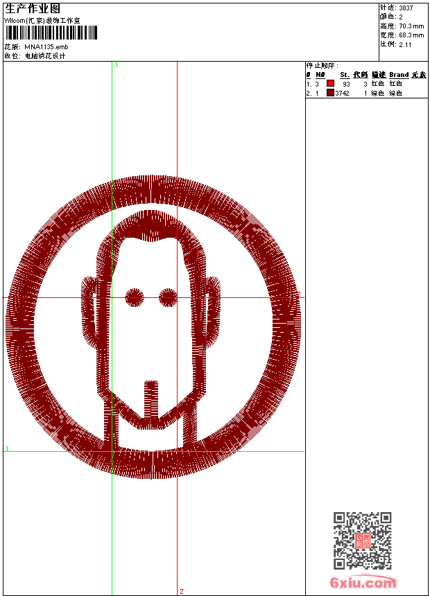 - 版带文件需绣花软件方可打开,可配色打印导出各种格式或直接上机绣。如无绣花软件可下载1:1模拟效果图。