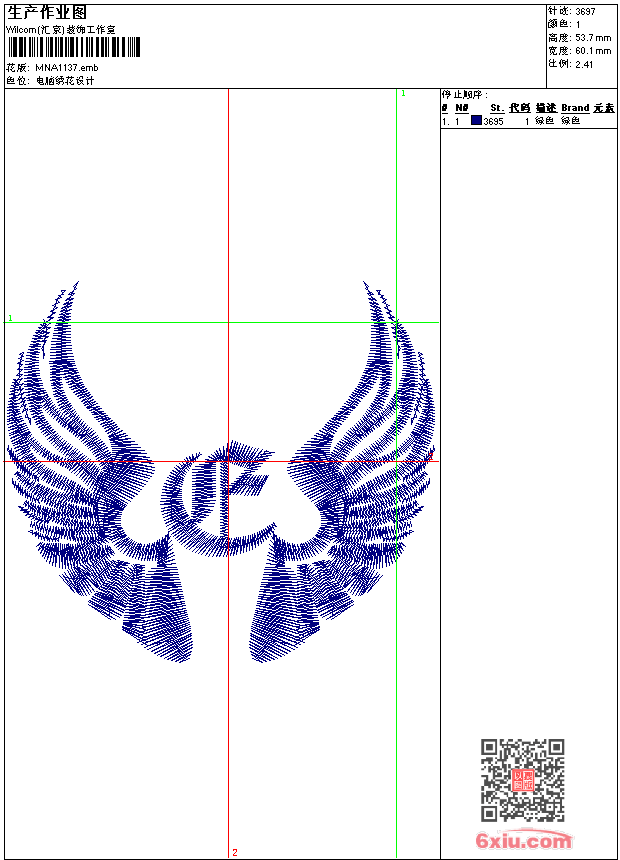 - emb花版参数: 大小:33.00 KB / 尺寸:60*54[毫米] / 针数:3697针 / 线色:1 / 格式:emb / 版本:9