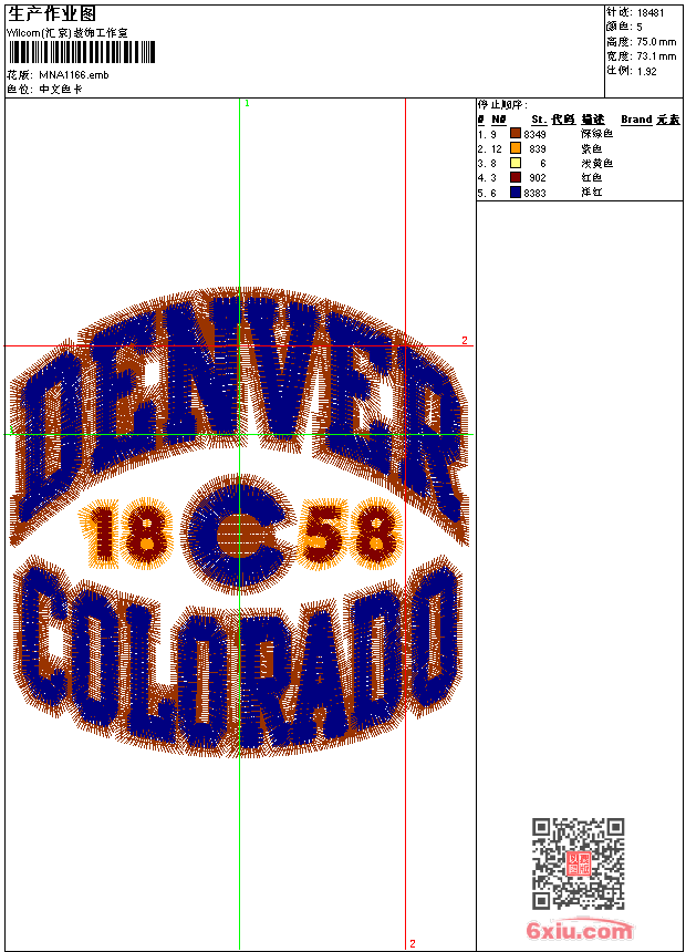 - emb花版参数: 大小:90.00 KB / 尺寸:73*75[毫米] / 针数:18481针 / 线色:5 / 格式:emb / 版本:9