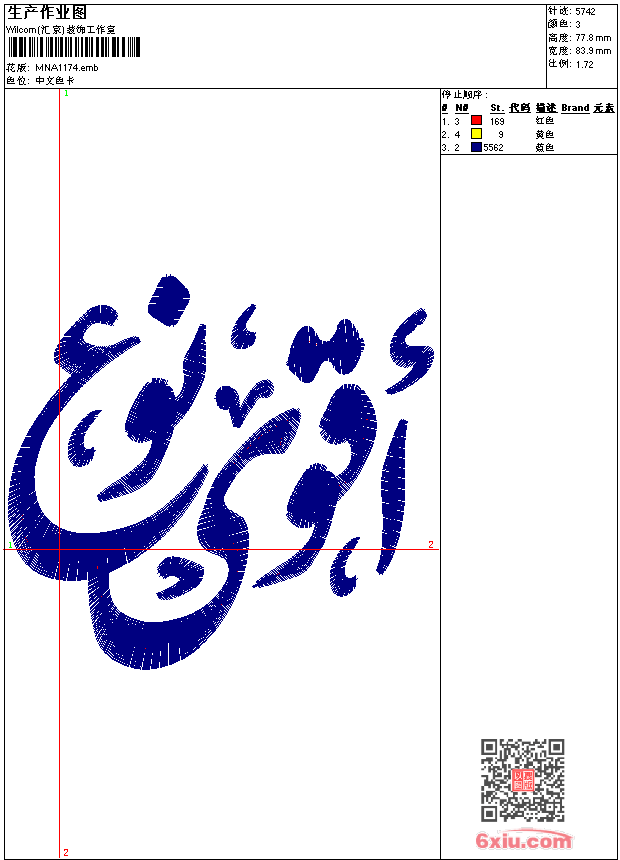 - 版带文件需绣花软件方可打开,可配色打印导出各种格式或直接上机绣。如无绣花软件可下载1:1模拟效果图。