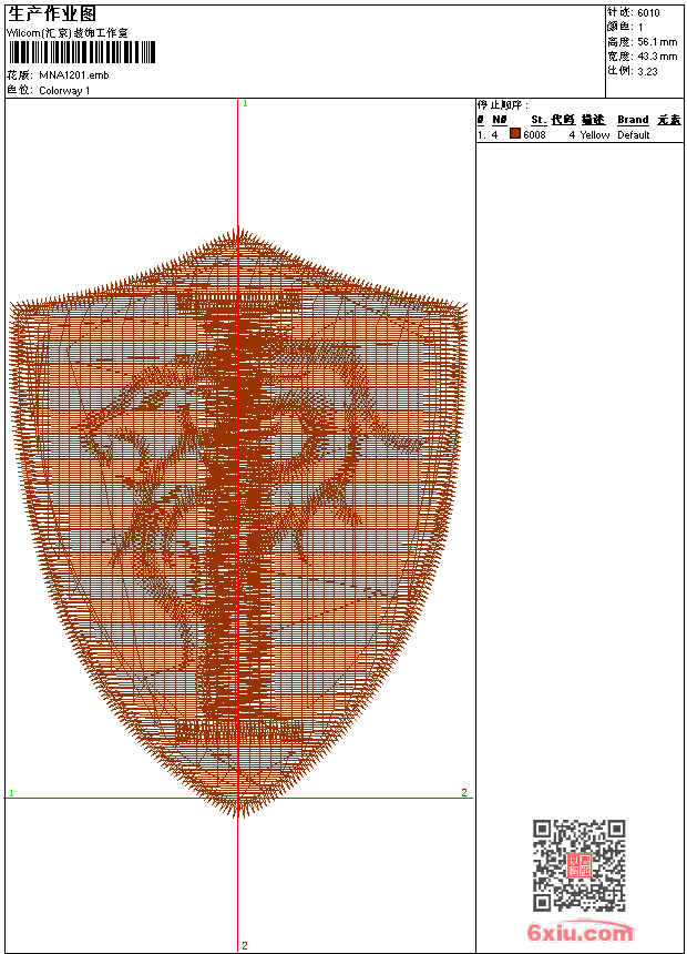 - emb花版参数: 大小:34.50 KB / 尺寸:43*56[毫米] / 针数:6010针 / 线色:1 / 格式:emb / 版本:9
