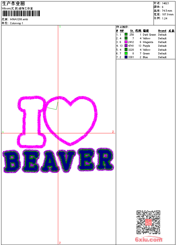 - 版带文件需绣花软件方可打开,可配色打印导出各种格式或直接上机绣。如无绣花软件可下载1:1模拟效果图。