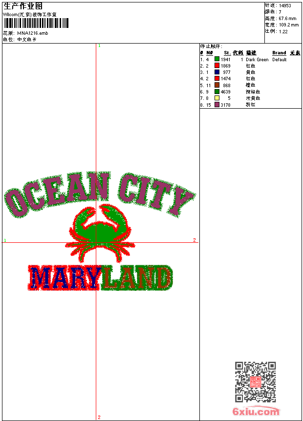 - emb花版参数: 大小:104.00 KB / 尺寸:109*68[毫米] / 针数:14953针 / 线色:7 / 格式:emb / 版本:9