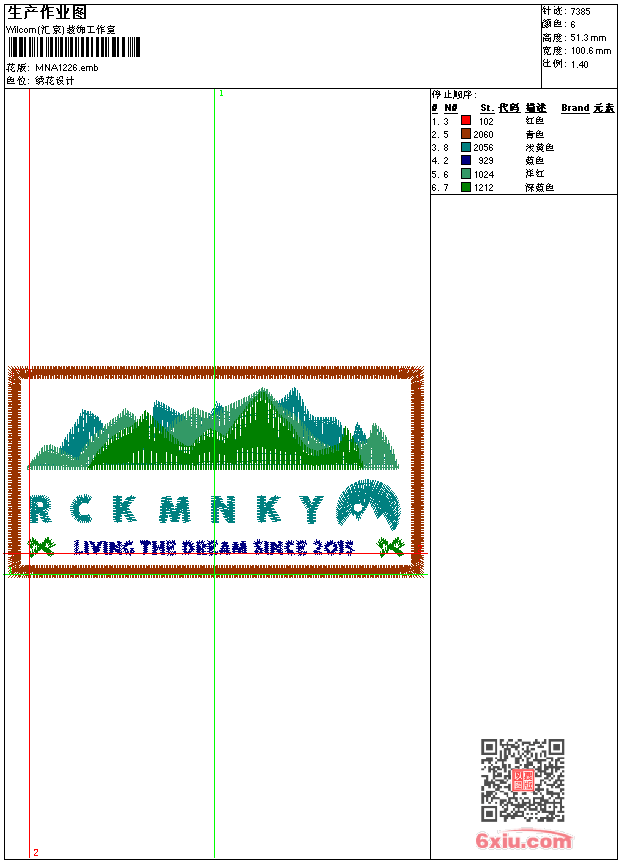 - emb花版参数: 大小:46.00 KB / 尺寸:101*51[毫米] / 针数:7385针 / 线色:6 / 格式:emb / 版本:9