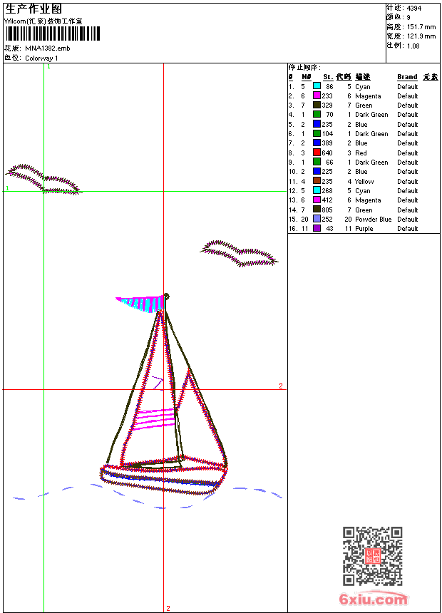 - emb花版参数: 大小:56.50 KB / 尺寸:122*152[毫米] / 针数:4394针 / 线色:9 / 格式:emb / 版本:9