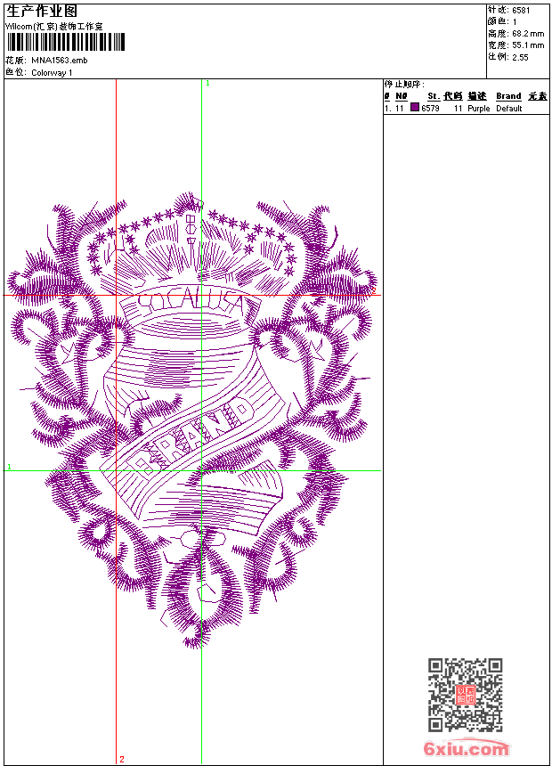 - emb花版参数: 大小:58.00 KB / 尺寸:55*68[毫米] / 针数:6581针 / 线色:1 / 格式:emb / 版本:9