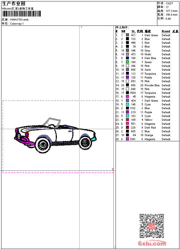 - emb花版参数: 大小:90.50 KB / 尺寸:196*127[毫米] / 针数:13227针 / 线色:17 / 格式:emb / 版本:9