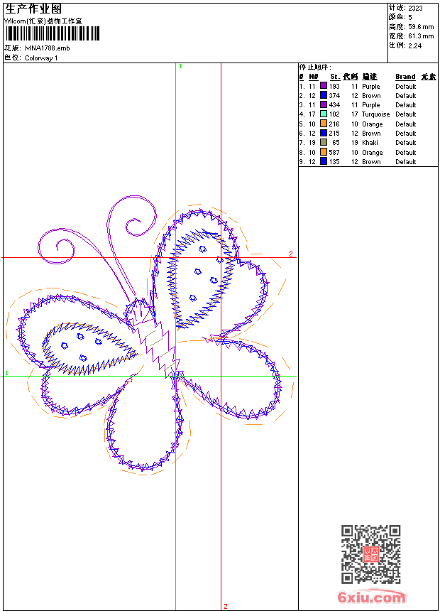 - emb花版参数: 大小:43.50 KB / 尺寸:61*60[毫米] / 针数:2323针 / 线色:5 / 格式:emb / 版本:9