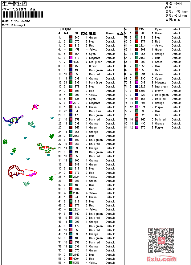 - emb花版参数: 大小:384.00 KB / 尺寸:951*1457[毫米] / 针数:87016针 / 线色:14 / 格式:emb / 版本:9