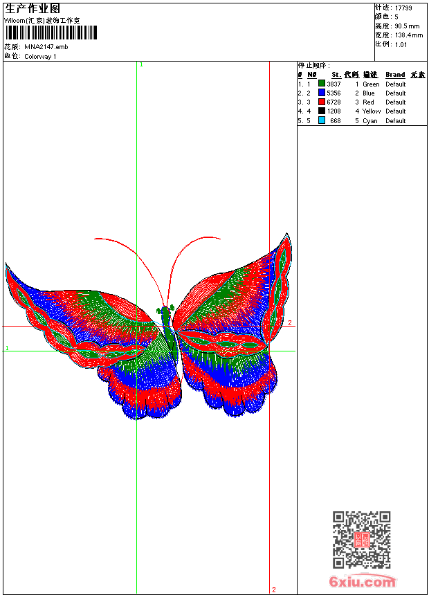 - emb花版参数: 大小:59.50 KB / 尺寸:138*91[毫米] / 针数:17799针 / 线色:5 / 格式:emb / 版本:9