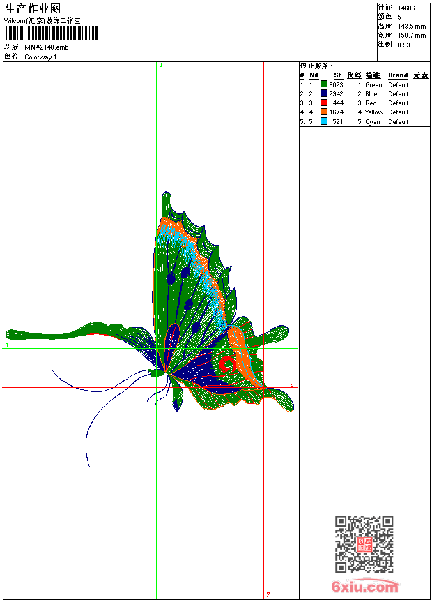 - emb花版参数: 大小:49.00 KB / 尺寸:151*144[毫米] / 针数:14606针 / 线色:5 / 格式:emb / 版本:9