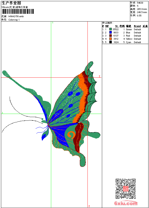 - emb花版参数: 大小:107.50 KB / 尺寸:250*266[毫米] / 针数:54630针 / 线色:5 / 格式:emb / 版本:9