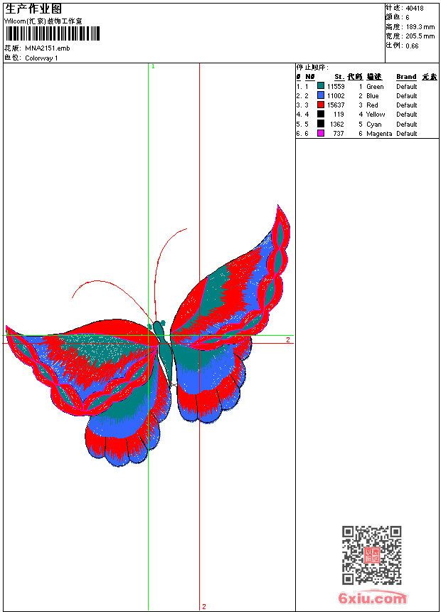 - emb花版参数: 大小:108.50 KB / 尺寸:206*189[毫米] / 针数:40418针 / 线色:6 / 格式:emb / 版本:9