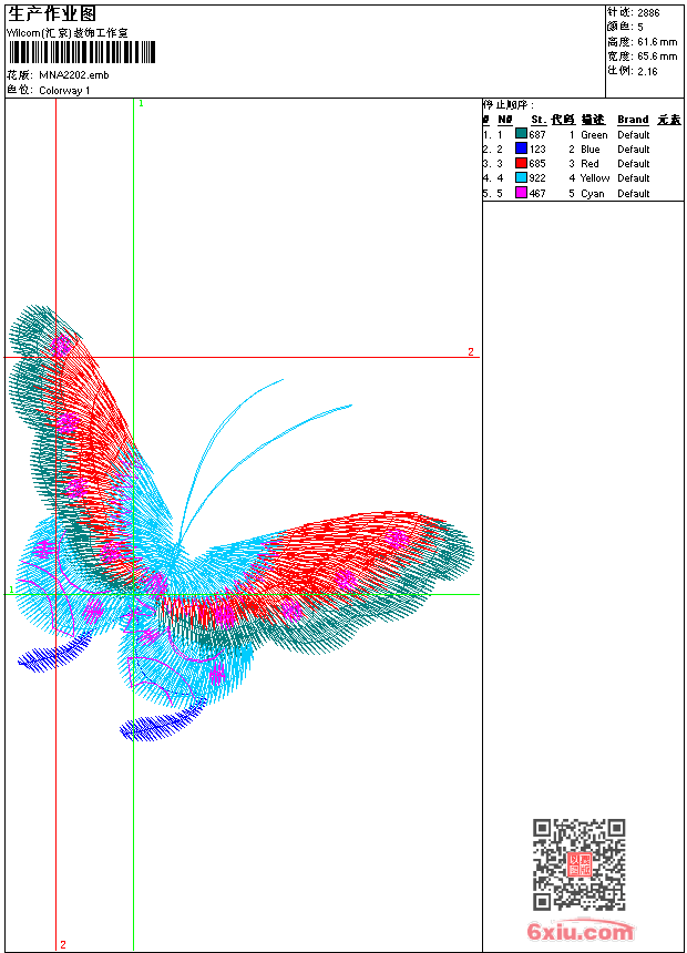 - emb花版参数: 大小:33.50 KB / 尺寸:66*62[毫米] / 针数:2886针 / 线色:5 / 格式:emb / 版本:9