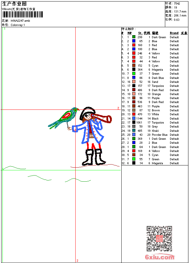 - 版带文件需绣花软件方可打开,可配色打印导出各种格式或直接上机绣。如无绣花软件可下载1:1模拟效果图。