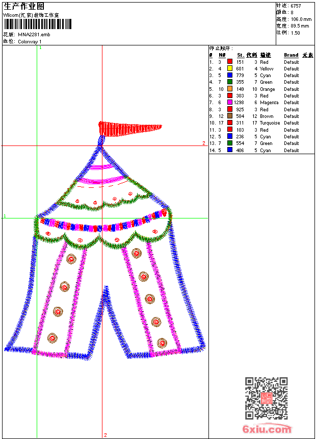 - 版带文件需绣花软件方可打开,可配色打印导出各种格式或直接上机绣。如无绣花软件可下载1:1模拟效果图。