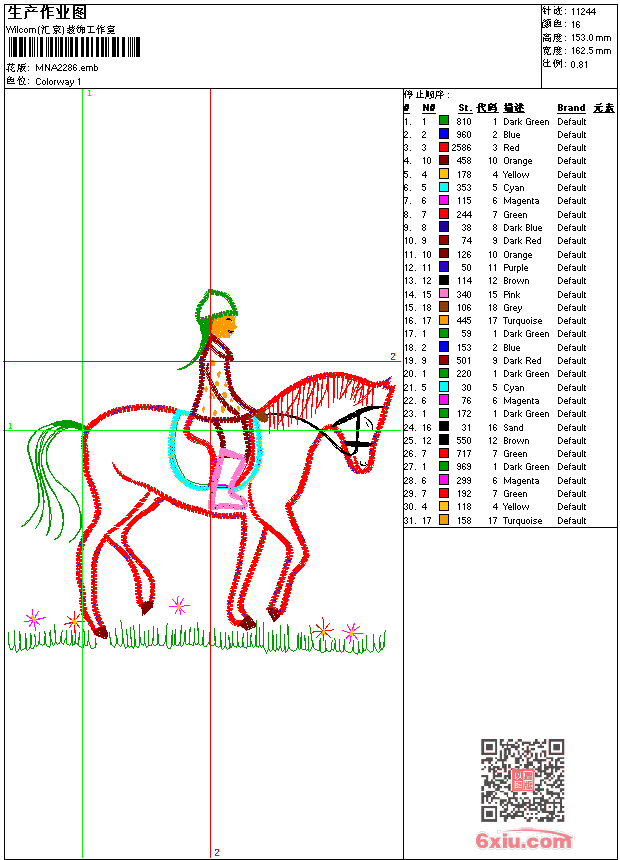 - 版带文件需绣花软件方可打开,可配色打印导出各种格式或直接上机绣。如无绣花软件可下载1:1模拟效果图。