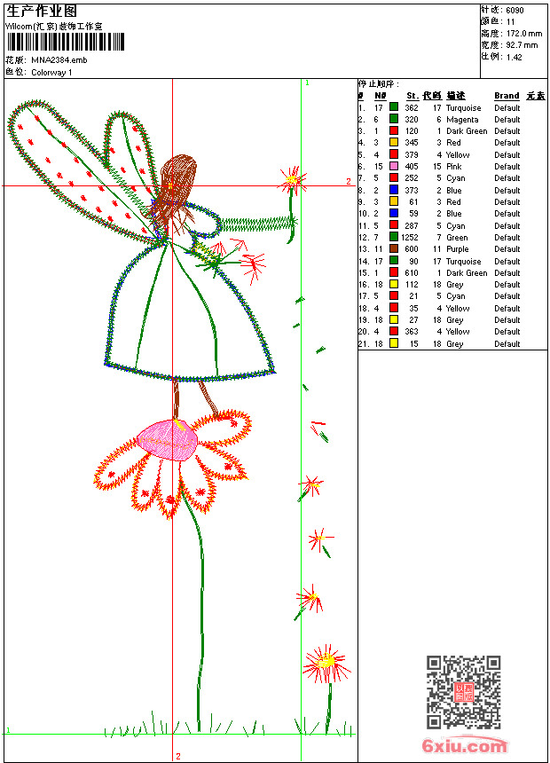 - 版带文件需绣花软件方可打开,可配色打印导出各种格式或直接上机绣。如无绣花软件可下载1:1模拟效果图。