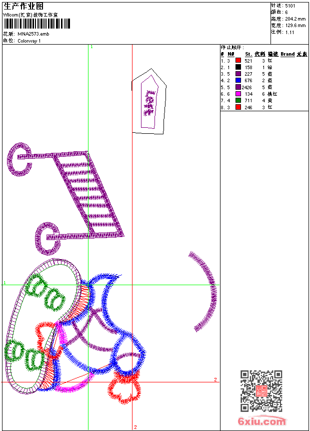 - emb花版参数: 大小:55.50 KB / 尺寸:130*204[毫米] / 针数:5101针 / 线色:6 / 格式:emb / 版本:9