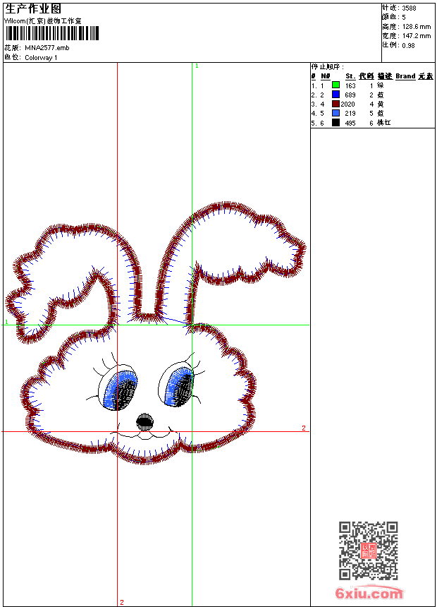 - 版带文件需绣花软件方可打开,可配色打印导出各种格式或直接上机绣。如无绣花软件可下载1:1模拟效果图。