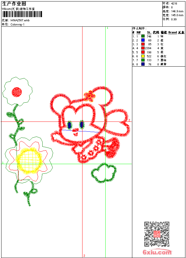 - emb花版参数: 大小:58.00 KB / 尺寸:145*147[毫米] / 针数:4216针 / 线色:8 / 格式:emb / 版本:9