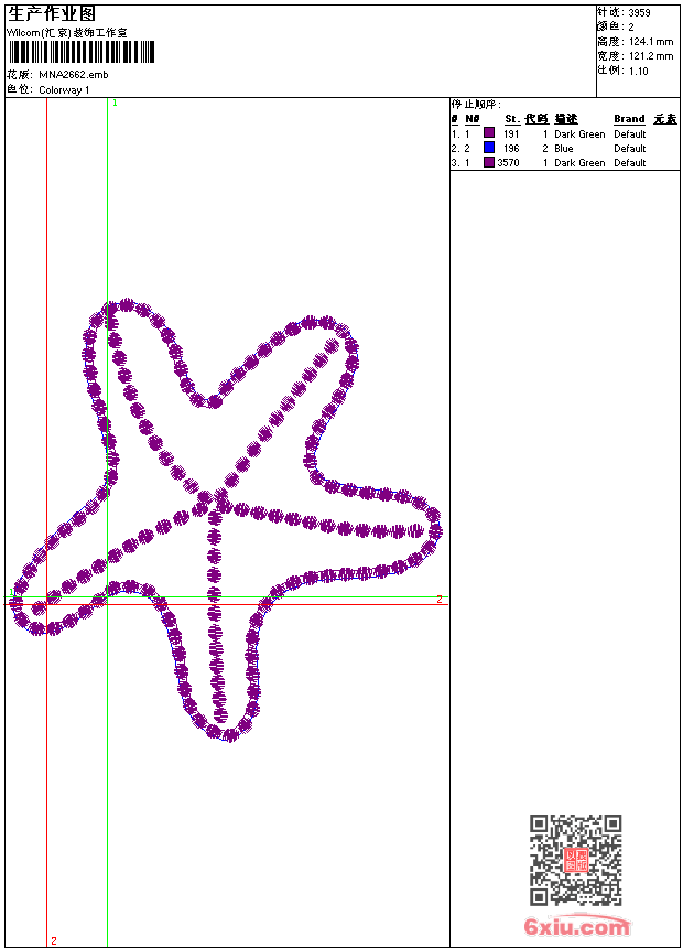 - emb花版参数: 大小:50.50 KB / 尺寸:121*124[毫米] / 针数:3959针 / 线色:2 / 格式:emb / 版本:9