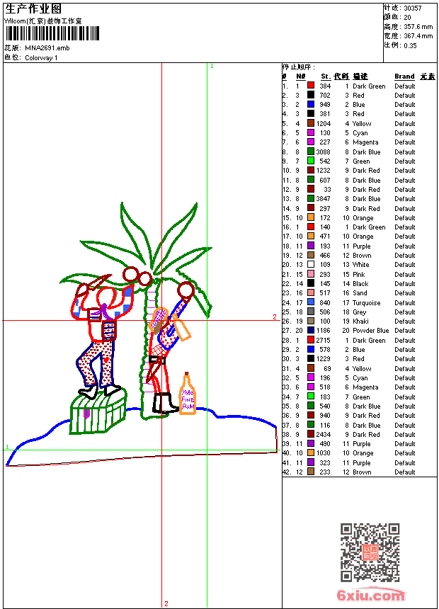 - emb花版参数: 大小:205.00 KB / 尺寸:367*358[毫米] / 针数:30357针 / 线色:20 / 格式:emb / 版本:9