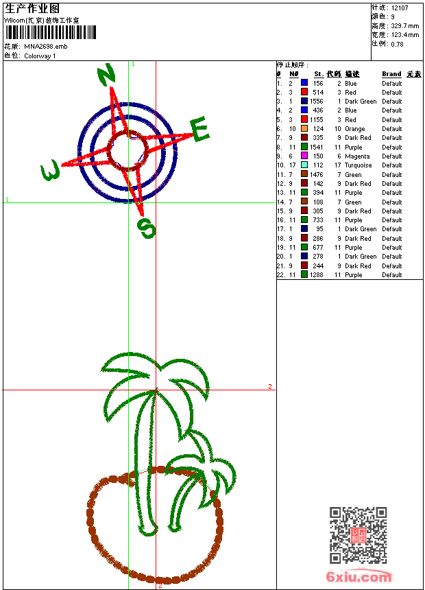 - 版带文件需绣花软件方可打开,可配色打印导出各种格式或直接上机绣。如无绣花软件可下载1:1模拟效果图。