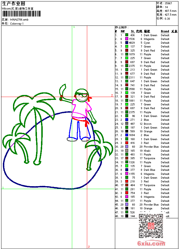 - 版带文件需绣花软件方可打开,可配色打印导出各种格式或直接上机绣。如无绣花软件可下载1:1模拟效果图。